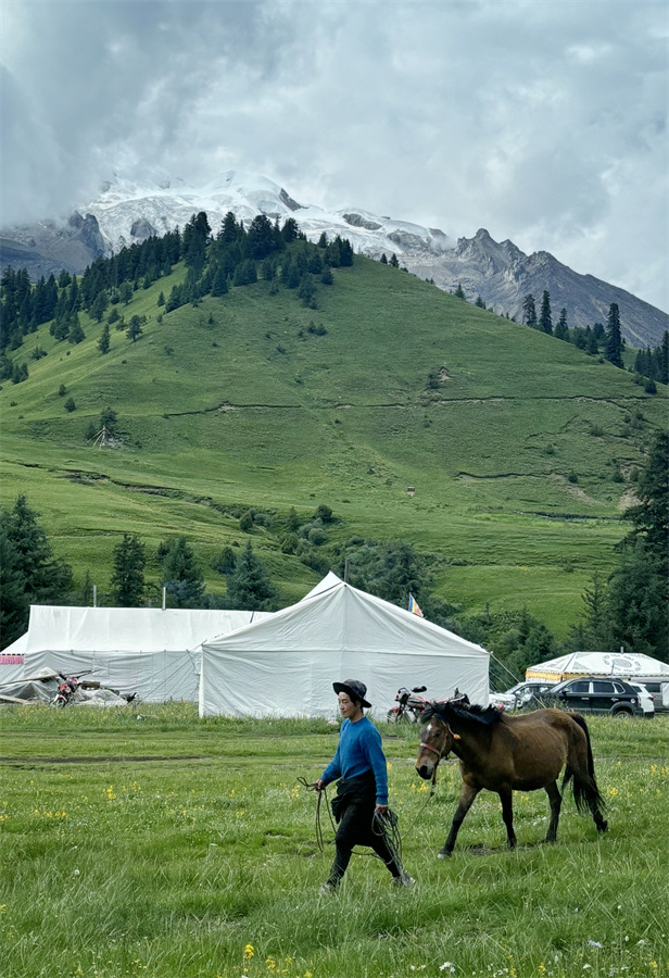 不管然日卡村還是則巴村,村民的勤勞善良也一樣讓人印象深刻。然日卡村的藏族姑娘丁真拉珍剛過18歲,卻經(jīng)常像個將軍去山上放牧和指揮100多頭牦牛,如果時間允許,她還去挖蟲草和松茸,但同時又在村里當(dāng)旅游向?qū)?,騎上摩托、牽上馬匹帶游客四處參觀,每天忙得不亦樂乎;同樣是然日卡村的小伙澤仁剛?cè)⒘宋棠饭媚铮麄儚膫鹘y(tǒng)的放牧中抽身出來,與村里許多年輕人一樣,一心一意打造鄉(xiāng)村民宿,用勤勞的雙手走上了一條嶄新的致富路;而則巴村的帥小伙甲他,今年也在村子里建起了屬于他們一家的“奔然甲他”民宿,奔然是村前一座小山的名字,甲他相信他們的日子一定如山一般堅實(shí)越過越好。