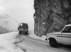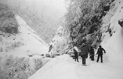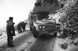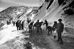 一九九七年十一月二十四日,連續(xù)多日大雪,把整個(gè)二郎山裹得嚴(yán)嚴(yán)實(shí)實(shí),白茫茫一片。陣陣山風(fēng)吹過(guò),大霧就像瀑布一樣,從山頂直往下翻涌?jī)A瀉。 一大早,州交通局打冰除雪排險(xiǎn)的干部職工就從二郎山管理站直奔山埡口。載有防滑砂的大貨車穿迷霧,繞山梁,向山頂埡口疾馳。由于氣溫太低,霧又大,車上的擋風(fēng)玻璃很快就結(jié)下了冰,路面打滑非常嚴(yán)重。前面車輛堵了起來(lái),排險(xiǎn)人員只好下車步行。 大霧彌漫,能見(jiàn)度很底,陰霾的天空又飄起了紛紛揚(yáng)揚(yáng)的雪花,剌骨的寒風(fēng)陣陣襲來(lái),只聽(tīng)見(jiàn)車蓬布在風(fēng)中“嗶剝”作響,卻看不見(jiàn)前面到底堵了多少車。排險(xiǎn)人員只好相互攙扶踩著冰滑的邊路艱難地向行。好不容易來(lái)到堵在最前面的車子面前。原來(lái)是一輛載著原木的東風(fēng)牌大貨車側(cè)滑在公路上,把整個(gè)公路堵死了。 局領(lǐng)導(dǎo)當(dāng)即指揮大家用鋼釬、鐵鎬和鋤頭處理冰道,沒(méi)有撮箕,大家借來(lái)加水桶裝運(yùn)冰雪……氣溫仍在急劇下降,剛從雪堆里刨出來(lái)的路,又被結(jié)起一層冰,就像地面上澆上了油,這就是冰雪道上有名的“桐油凌”。 有二位老同志不顧年老體弱,積極參與打冰除雪,一個(gè)在打冰時(shí),被彈起的冰碴把腦門劃了一個(gè)口子,鮮血直往外冒。有人想幫他包扎,他堅(jiān)決不干,自己就用手帕按住,把帽子向下拉蓋住傷口就算了。血從手帕中浸透出來(lái),與眉毛上的冰凌結(jié)在一起。氣溫太低,冰層太厚,十字鎬每挖一下,多數(shù)情況下也就是挖下一個(gè)白點(diǎn)而已。不一會(huì)兒,另一位老同志已是滿頭大汗,大家勸他休息一下,他卻說(shuō):趁著現(xiàn)在雪不是太大,早點(diǎn)把主道上的冰雪多除點(diǎn),過(guò)往二郎山的車輛就多一份安全。 排險(xiǎn)人員的手凍紅了,刨冰雪碰傷的指頭還流著鮮血,身上蒸發(fā)的熱氣,把衣領(lǐng)口、袖子口和褲子口結(jié)成了冰,可是,誰(shuí)也沒(méi)有吭一聲。 ……受堵車輛終于向前開(kāi)動(dòng)了。 風(fēng),越刮越猛,雪,越來(lái)越大。 防滑車在冰雪道上艱難地向前爬行著,車箱上面的職工們揮舞的洋鏟向路面撒著防滑砂。一路上風(fēng)絞雪,防滑車象一頭不聽(tīng)使喚的牛,顛簸、亂竄,好不容易才來(lái)到260(二郎山最險(xiǎn)處),對(duì)這里“桐油凌”路面進(jìn)行重點(diǎn)防滑處理后,防滑車又返回來(lái),開(kāi)始向山頂進(jìn)發(fā)……風(fēng)雪二郎山上打冰除雪、防滑排險(xiǎn),看似沒(méi)有驚天動(dòng)地的壯舉,身臨其景才知其艱難辛苦。難怪當(dāng)年每每經(jīng)過(guò)二郎山冰天雪地奇險(xiǎn)路段的車,都會(huì)向風(fēng)雪中屹立路邊的交通系統(tǒng)排險(xiǎn)保暢通的職工們鳴笛致敬,風(fēng)雪中的那份情彌足珍貴。 川藏線上的老司機(jī)傳下來(lái)一首傷心的順口溜:“車過(guò)二郎山,如闖鬼門關(guān),萬(wàn)幸不翻車,也要凍三天!”其險(xiǎn)峻實(shí)為罕見(jiàn),尤其是途經(jīng)二郎山260(公路公樁)處,曾被淡虎色變的人稱為“鬼招手”的險(xiǎn)路段。 1983年1月3日,有著安全行車44萬(wàn)公里記錄的一位駕駛員開(kāi)著輛嶄新的東風(fēng)牌貨車,同行還有兩名職工,夜行二郎山,在彌天大霧中神秘地“失蹤”了。十五天后,搜山的人才用望遠(yuǎn)鏡看到260公里路樁處的山崖下,有一塊汽車破篷布掛在樹枝,猶如招魂的凄厲幌幡在冷風(fēng)中招搖晃動(dòng)。鋼纜繩吊著搜山的人下到崖下400米深處的谷底。扒開(kāi)一座座雪堆,叫人汗毛倒豎:雪堆下,盡是廢大梁、爛車廂、銹車頭和支離破碎的汽車,足有一個(gè)汽車連!一輛不知埋了多久的卡車廂里牛肉已腐爛,駕駛室里坐著三具發(fā)黑的僵尸……其狀慘不忍睹!