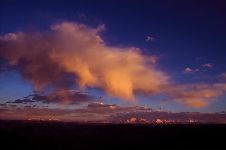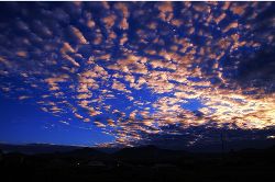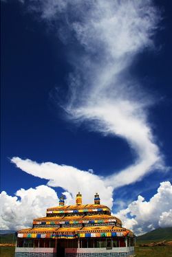 云在天上飄動,影子在大地上掠過,碧綠的草地在云流的映襯下五彩斑斕,猶如一塊巨大的迷彩布,把草地打扮得分外妖嬈。云不墨守成規(guī),每時每刻都有新創(chuàng)意;云有層次的美,有型有款。時刻花樣百出、千奇萬巧的云景,常使人遐想聯(lián)翩。我愛高原的云,因?yàn)橐嗾嬉嗷玫脑品路鸪闪诵撵`遠(yuǎn)游的載體,寄托著人們的留戀與追求。