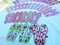 瀘定縣嵐安刺繡是純手工特色工藝品。1300多年前,羌族工藝就流傳于嵐安鄉(xiāng),刺繡工藝便是其中一種。嵐安刺繡在操作上有平繡、牽繡 、挑花和納花;工藝分圖譜和剪紙,圖譜是繡大型的如圍裙、小兒抱裙、背心等,先勾畫圖譜,按圖配色選線再繡;剪紙是用蠶繭殼剪成圖形,再固定在所繡之物上,配色選線繡,所繡之物多為涉獵帽子、鞋子、婦女的針插子、扇插子等。主要繡字、花、草、樹、鳥、獸、昆蟲、山水等。全鄉(xiāng)有800余農(nóng)戶,每戶都有一兩人會從事手工刺繡。刺繡產(chǎn)品可作贈送品、商品、旅游紀念品及各種裝飾品。(徐慧 文/圖)