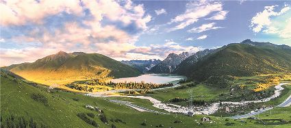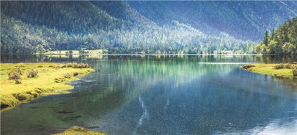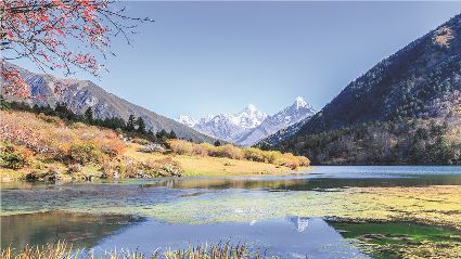 一天之中,數(shù)清晨和傍晚的海子最美,晨光中,湖水猶如鏡面般倒映著周圍的景物,天色漸漸亮了,周圍的景物也在 “鏡子”中漸漸清晰起來,特別是那些雪山下的海子,當(dāng)太陽給雪山鍍上一層玫瑰金,倒影更美。傍晚,落日的余暉灑在海子和它周圍的景物上,又是另一種美,天上再有幾縷晚霞,更絕。四季里,就要看秋天的海子,因?yàn)檫@時海子周圍的景色是最美的,紅葉、黃葉、綠葉相間,便襯托得海子更美。