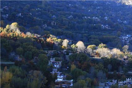 落日將最后一道霞光在山尖劃過,暗夜便裹挾這寒意搖動(dòng)起山林中的樹木。風(fēng)漸緊,那已經(jīng)稀稀落落的樹葉隨著風(fēng)的韻律,跳起歡快的鍋莊,仿佛在告別這一年的繁華。突如其來(lái)的大雪,給丹巴的二月涂上白色的記號(hào)。從山尖到院前的樹上,一溜兒雪白,正應(yīng)了“忽如一夜春風(fēng)來(lái),千樹萬(wàn)樹梨花開”的情景,讓人忍不住伸出手指看看這花是真是假。大雪過后,陽(yáng)光如約而至撒滿藏寨,金色陽(yáng)光和蒸騰的白霧縈繞在雪白的山頭,與山下的古碉藏寨,河畔的清流巧妙地構(gòu)成一幅絕美畫卷,讓人仿佛身處仙境。吸足了養(yǎng)分的柳樹終于抽出綠芽送來(lái)春天的信號(hào),那柳條兒在細(xì)風(fēng)吹拂下宛如少女對(duì)鏡梳妝,在陽(yáng)光下顯得無(wú)比溫柔,讓人不禁想貼近它們,感受這溫暖又靜謐的溫柔。