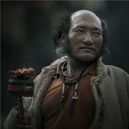 每當(dāng)我手持相機(jī)時(shí),對(duì)他們始終懷有一種敬畏,我捕捉到他們眼神里流露出虔誠。看著經(jīng)筒上“甲多”的飛轉(zhuǎn),我陶醉了,醉在那轉(zhuǎn)經(jīng)筒的旋轉(zhuǎn)舞動(dòng),醉在那轉(zhuǎn)經(jīng)筒傳誦的故事,醉在那一張張手持轉(zhuǎn)經(jīng)筒的面孔,還有,還有因祈禱音符助推而從未停止的轉(zhuǎn)經(jīng)筒……