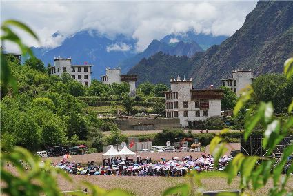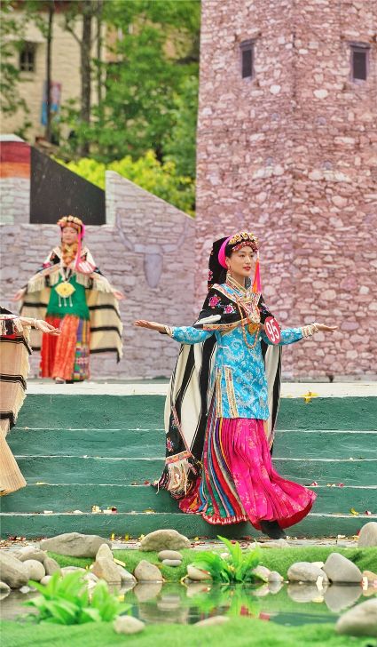 比賽開始不久,現(xiàn)場下起了小雨,但絲毫沒有影響熱烈氣氛。臺上的佳麗們,略施粉黛,穿著承載著嘉絨風情文化的民族盛裝,自我介紹,優(yōu)雅展示。臺下,則是鄉(xiāng)民齊聚,熱情高漲。大家紛紛到場,為佳麗們加油助威。據(jù)介紹,丹巴出美女始于漢代的東女國時期。古時每年農(nóng)作物收獲的時節(jié),丹巴各村各寨都要舉行盛大的選美和祭祀活動。