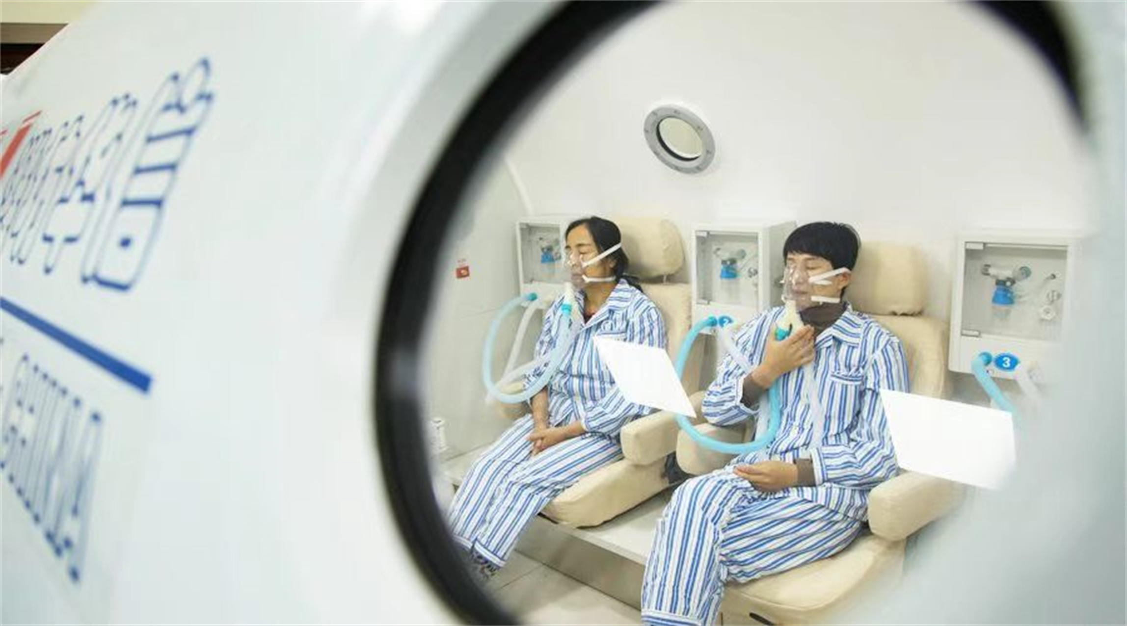 康子元剛走出的這個外觀形似“潛水艇”的罐狀器械,就是高壓氧艙。高壓氧艙基于物理學(xué)原理,讓患者處于高于一個大氣壓的環(huán)境中,吸入純氧或高濃度氧氣,以極大地增加肺泡氧分壓和血氧張力,進而增加血氧含量。通過治療不僅能有效緩解相關(guān)癥狀,還能幫助人體更快地適應(yīng)高海拔環(huán)境,高壓氧艙無疑正成為一種更理想的治療“高原反應(yīng)”的選擇。