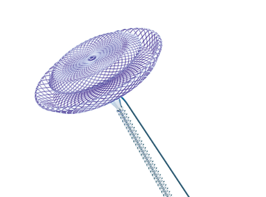 經(jīng)過(guò)反反復(fù)復(fù)的嘗試,最終把封堵器做成了雙盤(pán)內(nèi)凹結(jié)構(gòu),并通過(guò)高溫?zé)岫ㄐ图疤厥狻版i扣”設(shè)計(jì)等,實(shí)現(xiàn)“非形狀記憶的材料達(dá)到形狀記憶的功能”。