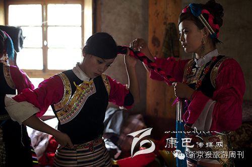 藏戲服裝鮮艷,最好的是女人頭上的花環(huán),春天的姹紫嫣紅都盛放在她的頭上,春天真的來(lái)了。長(zhǎng)調(diào)悠揚(yáng),回蕩在河谷上空。年輕的巴塘人說(shuō),有些聽(tīng)不懂了,但是圍坐的老人們都認(rèn)真觀摩,跟著情節(jié)唏噓或者含笑。附近寺廟里的小喇嘛也來(lái)了,圍著小伙伴的摩托車(chē)笑笑鬧鬧。