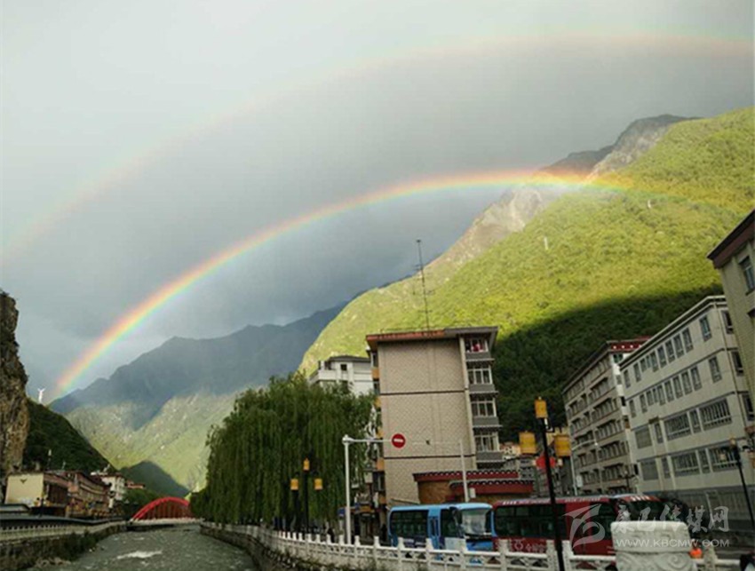 6月4日下午18時55分左右,康定東關突然出現(xiàn)兩道美麗的彩虹。過往人們紛紛駐足觀看,許多人拿出手機記錄這美麗的景色。這次出現(xiàn)的彩虹在康定很多地方都能看見,下橋、大禮堂、阿里布果都能看見。ps:啥是雙虹!虹是大氣中的一種光的色散現(xiàn)象。太陽光是由赤橙黃綠青藍紫七種不同的光線組成的,由于它們的波長不同,當雨后太陽光射入空氣中的水滴時,水滴對不同波長的光線接受程度不同,經(jīng)過水滴表面發(fā)生曲折,然后再由水滴內壁重復地折射出來,這樣經(jīng)過水滴的折射,分光,內反射,再折射等,太陽光的七種顏色便被分散開,就形成了彩虹。如果太陽光經(jīng)過水滴的兩次反射,兩次折射才射出水滴,便形成了雙虹。