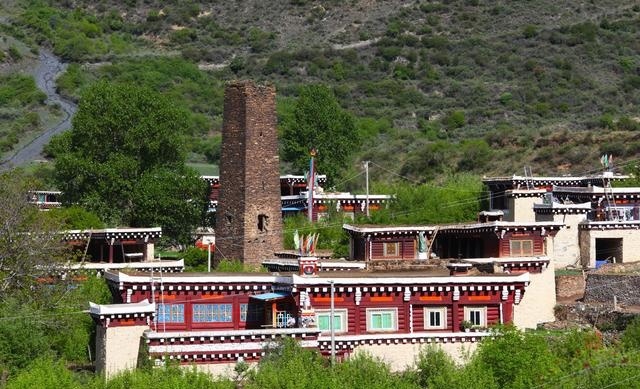 走進(jìn)這座別致的高原城市,首先呈現(xiàn)在你面前的就是那鱗次櫛比的藏式民居。這些民居外表主要由棕白兩色構(gòu)成,白色的屋頂,白色的主墻,木結(jié)構(gòu)處多用棕色顏料染涂,其間配以紅色、藍(lán)色圖案,在藍(lán)天、白云、青山、綠水的輝映下,仿佛幻化成妙不可言的積木圖案。這里的民居修得美輪美奐。如果不是親眼見到,還一定會認(rèn)為這令人眩目的房屋是夢境。這就是道孚民居,被譽(yù)為散落人間的仙境皇宮。