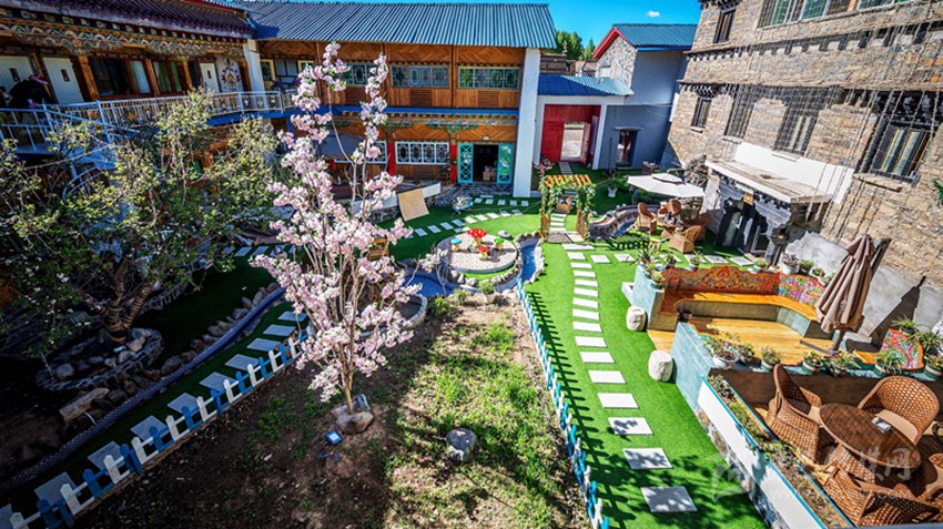 曾經(jīng)的倉(cāng)庫(kù)變成了咖啡廳,關(guān)牛的地方變成了餐廳,土司房變成了溫泉套間,四合院變成了小橋流水,雖然有些改變,但留給客人的依舊是一個(gè)傳統(tǒng)藏式四合院?!拔ㄒ桓淖兊闹皇嵌嗔诵┬氯诵率聛韥硗谶@里從你的全世界路過……”石雅琴借用張嘉佳的《從你的全世界路過》的話語,道出了她對(duì)“親愛的宅宅”的“定性”。