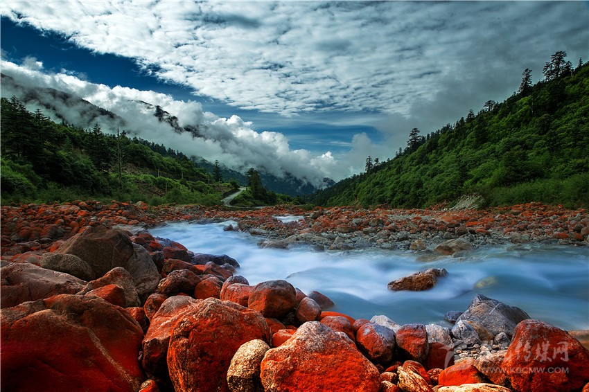 紅石是大自然贈(zèng)送給貢嘎山地區(qū)最珍稀的物種之一。海螺溝風(fēng)景區(qū)分布著大面積的紅石灘,每一塊石頭都被披上了一件美麗的紅色外衣,紅石在河流兩旁堆積,成群的紅石變成一種流動(dòng)的紅色,與清洌的流水相伴順流而下,讓人感嘆大自然的造化神奇。