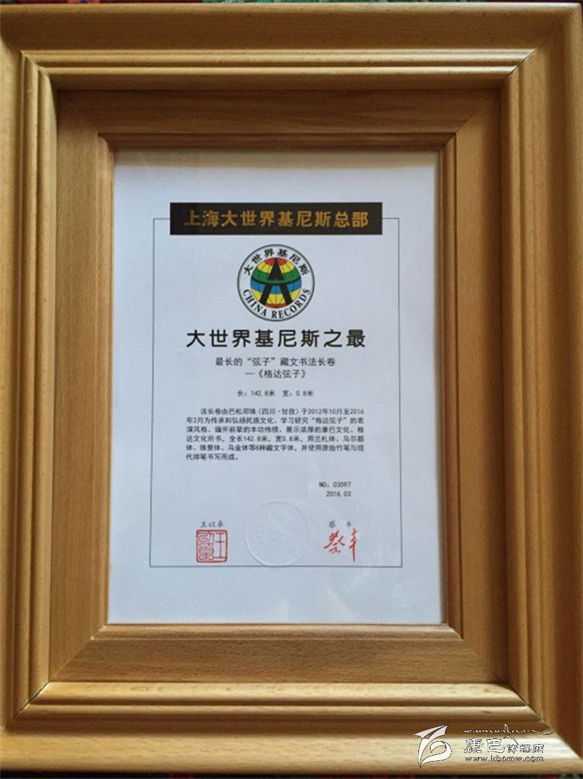 我州藏文書(shū)法家、省級(jí)藏文書(shū)法傳承人、上海基尼斯紀(jì)錄創(chuàng)造者巴松鄧珠歷時(shí)三年創(chuàng)作完成了《格達(dá)弦子詞》藏文書(shū)法長(zhǎng)卷。日前,《格達(dá)弦子詞》成功申報(bào)上海大世界基尼斯最長(zhǎng)的“弦子”藏文書(shū)法長(zhǎng)卷。5月6日至12日“圣潔甘孜·走進(jìn)上海”系列展在上海展覽中心西二館亮相。
