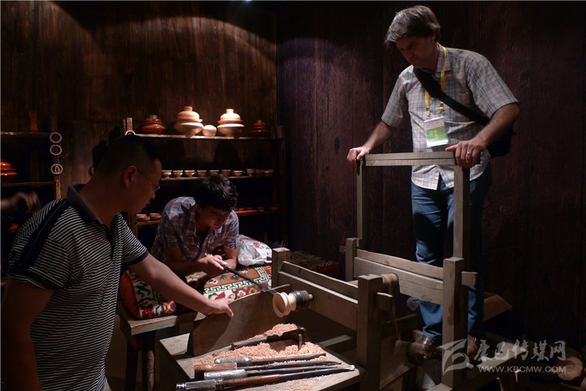 土耳其客人體驗(yàn)得榮傳統(tǒng)木制手工藝。