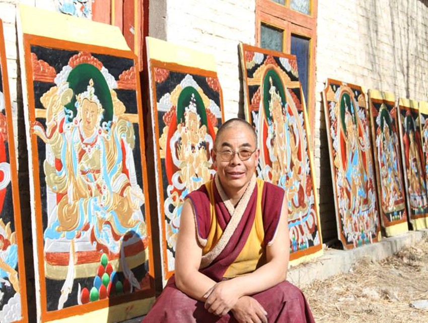 據(jù)悉,澤仁鄧珠曾被康巴文化公司高薪聘請做了兩年石刻,但是最終選擇了回鄉(xiāng)開班授業(yè)。目前,他共教了11個(gè)學(xué)生,其中6人已經(jīng)可以自立門戶,他的學(xué)生當(dāng)中有還俗僧人也有待業(yè)青年,都是自愿上門學(xué)藝的。他收徒不限民族、年齡,也沒有地域限制,只要真心上門求學(xué)的他都從不拒絕,但是做他的徒弟決不能打架盜竊、抽煙喝酒,無論誰觸犯其中一條他將不再向其授業(yè)。被問及定下這個(gè)規(guī)矩的原因,澤仁鄧珠解釋道,學(xué)習(xí)石刻要有一定的文化基礎(chǔ),還得從學(xué)習(xí)繪畫做起,是一個(gè)漫長而枯燥的過程,如果沒有堅(jiān)韌平和的心性和健康的身體很難學(xué)成。
