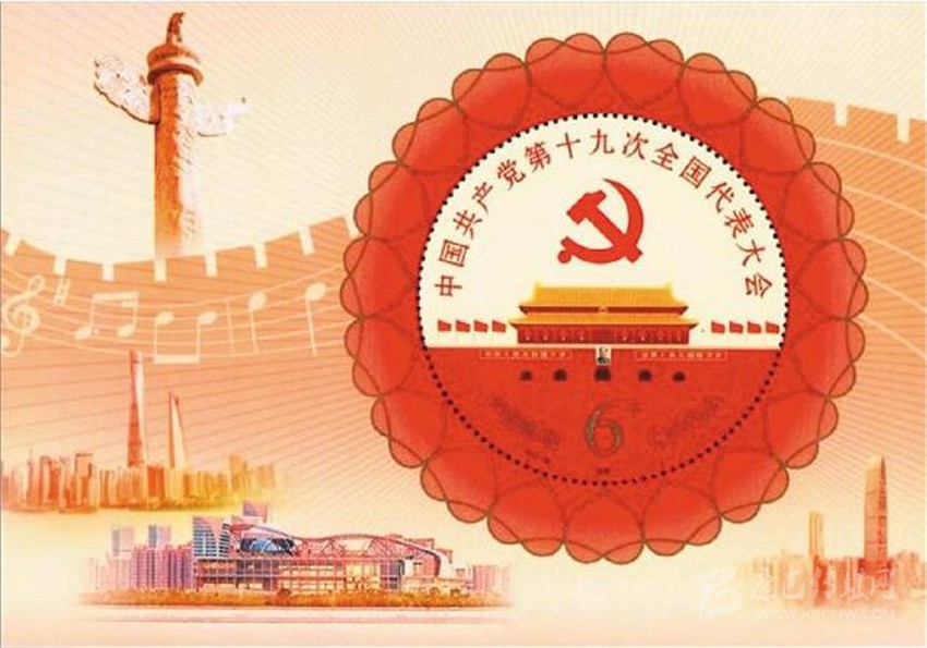 10月18日發(fā)行的《中國共產(chǎn)黨第十九次全國代表大會》紀(jì)念郵票小型張。