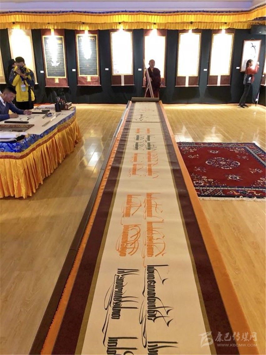 站在“倉央嘉措詩歌藏文書法百米長卷”面前,來自成都的徐賢前感嘆到:“我一直都很喜歡倉央嘉措的詩歌,但從來沒有想過可以通過書畫的形式來展現(xiàn)倉央嘉措詩歌,雖然我看不懂藏文,但是依然感到震撼,這次我真是不虛此行??!”據(jù)了解,在詩歌節(jié)期間,理塘縣電子商務(wù)孵化中心書畫文化廳內(nèi)展出由縣級非遺卓擦?xí)▊鞒腥恕⒖h級非遺噶瑪嘎孜派唐卡傳承人、縣書法協(xié)會成員等集合而成的近60幅藏漢書畫作品。其中,首次對外展出的“倉央嘉措詩歌藏文書法百米長卷”引來了眾多參觀者的圍觀。