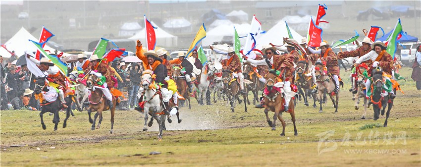 “神駿飛蹄沖云霄,箭過耳畔風(fēng)蕭蕭。眨眼已達(dá)終點(diǎn)線,歡呼聲起似驚濤。”——這是今年理塘賽馬會現(xiàn)場最貼切的寫照。8月3日上午,在“馬術(shù)之鄉(xiāng)”的理塘縣八一賽馬場,禮炮聲響還未散盡,來自曲登鄉(xiāng)、高城鎮(zhèn)、格木鄉(xiāng)、奔戈鄉(xiāng)、禾尼鄉(xiāng)及村戈鄉(xiāng)共計(jì)1000名草原騎手齊登場,他們忽而馬背倒立,忽而藏身馬肚,忽而俯身拾哈達(dá),忽而飛槍射擊,繪出一幅壯闊人心的畫面。