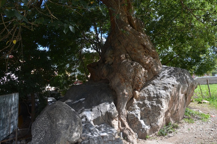 如今古桑抱石守衛(wèi)著巴塘這片熱土近千年,對研究巴塘的人文和氣候變化有極其重要的價(jià)值,保護(hù)好它理所應(yīng)當(dāng),擔(dān)心的是巨石旁長起兩棵皂莢樹,已比碗口還粗,大有后來居上之勢,若不未雨綢繆,必勢大難除。