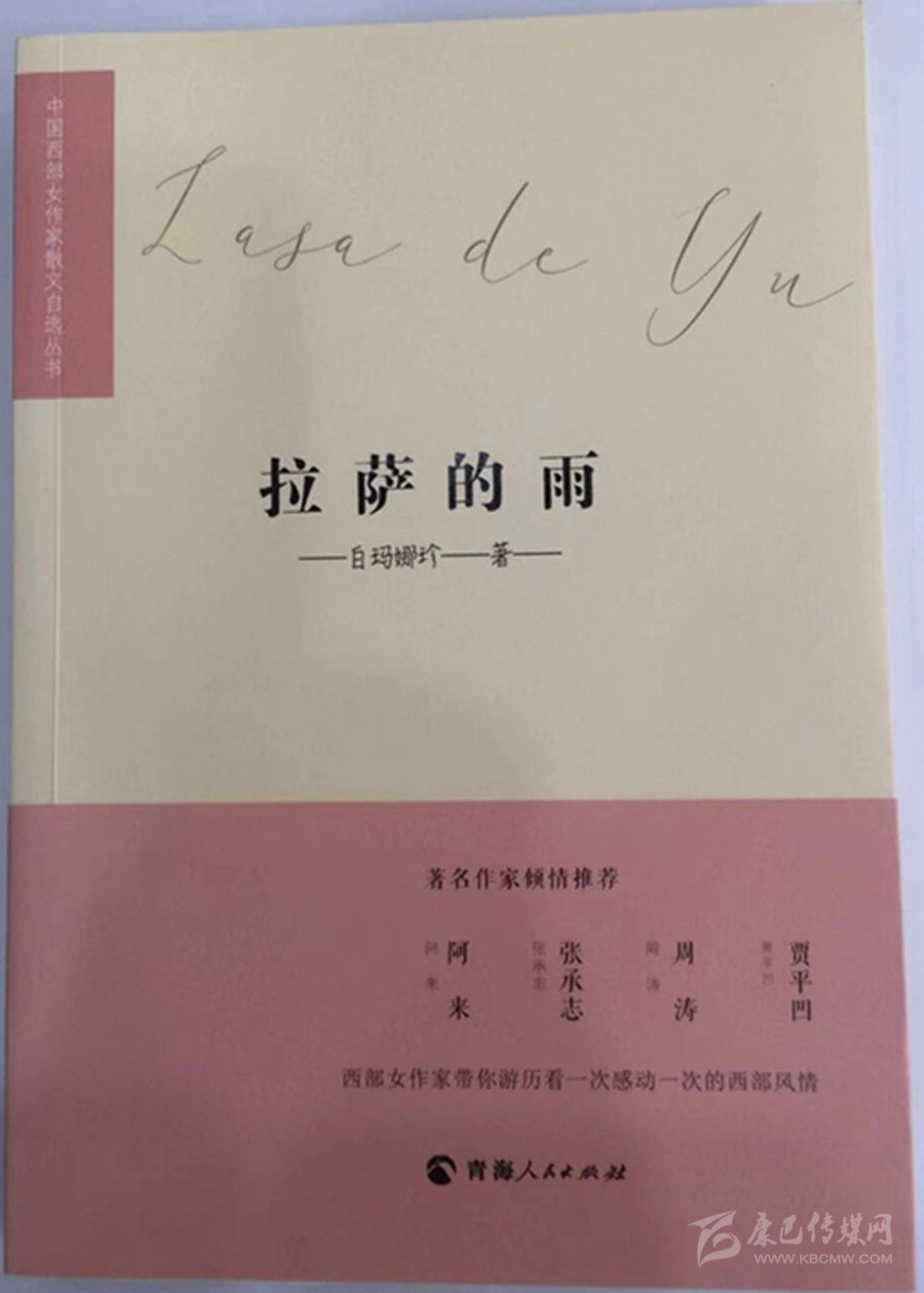 藏族作家白瑪娜珍散文集《拉薩的雨》近日由青海人民出版社出版。該書是青海人民出版社策劃出版的“中國(guó)西部女作家散文自選叢書”之一,由西部六省區(qū)的六位女性作家組成,每個(gè)省區(qū)各一位,分別是西藏的白瑪娜珍、陜西的杜文娟、新疆的李穎超、甘肅的習(xí)習(xí)、寧夏的阿舍、青海的唐涓?!独_的雨》選編了白瑪娜珍近年創(chuàng)作的散文單篇,文彩飛揚(yáng),飽含對(duì)西藏的摯愛,敘述了藏地變遷中一個(gè)個(gè)真實(shí)感人的故事。著名作家張承志、賈平凹、周濤、阿來(lái)傾情推薦,對(duì)六位作家的作品給予了充分肯定?!靶形幕蚣で轱w揚(yáng),或娓娓道來(lái),或追古撫今,文筆深刻細(xì)膩,具有濃郁的西部風(fēng)情,展示了作者對(duì)高天厚土的所思所想,情懷與擔(dān)當(dāng),描述了西部地區(qū)多民族的種種生存景觀,透過(guò)他們的生活方式,感悟出特定人文環(huán)境下的文化精神和高潔的人性光輝。”