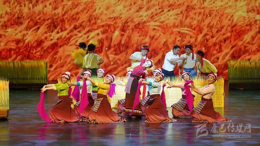“金黃的麥浪中,‘第一書記’與‘農(nóng)牧民群眾’載歌載舞,共同歡慶豐收的喜悅?!边@是我州赴廣東省群眾文藝交流演出中,舞蹈《援建人》中的一幕。