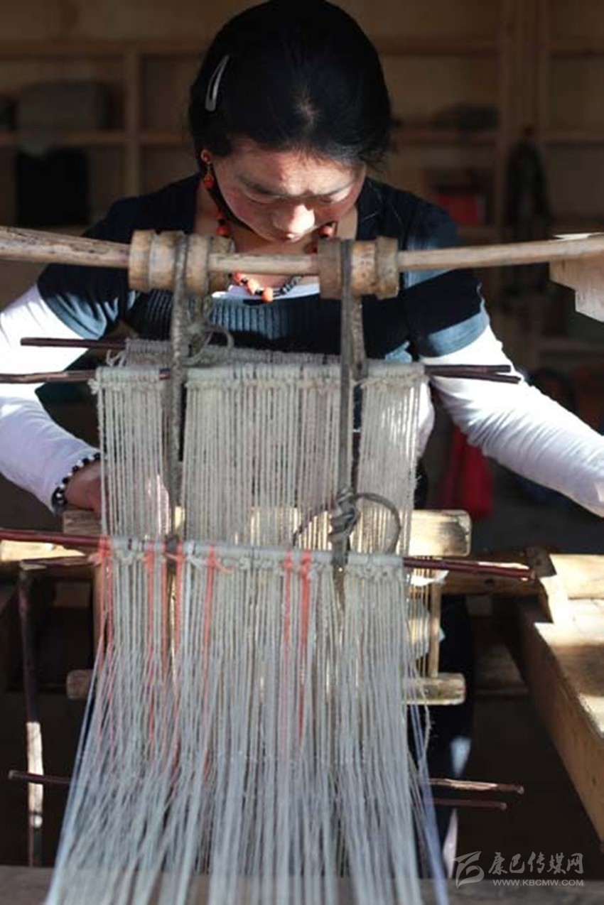 牛羊毛絨編織是藏族傳統(tǒng)的手工藝,婦女們用自家養(yǎng)的牛、羊絨編成日用衣服、圍巾。隨著現(xiàn)代紡織用品的流入及其他一些歷史原因這門(mén)技術(shù)幾近失傳。如今七十多歲的澤巴姆是整個(gè)麥宿唯一掌握這項(xiàng)傳統(tǒng)技藝的人。