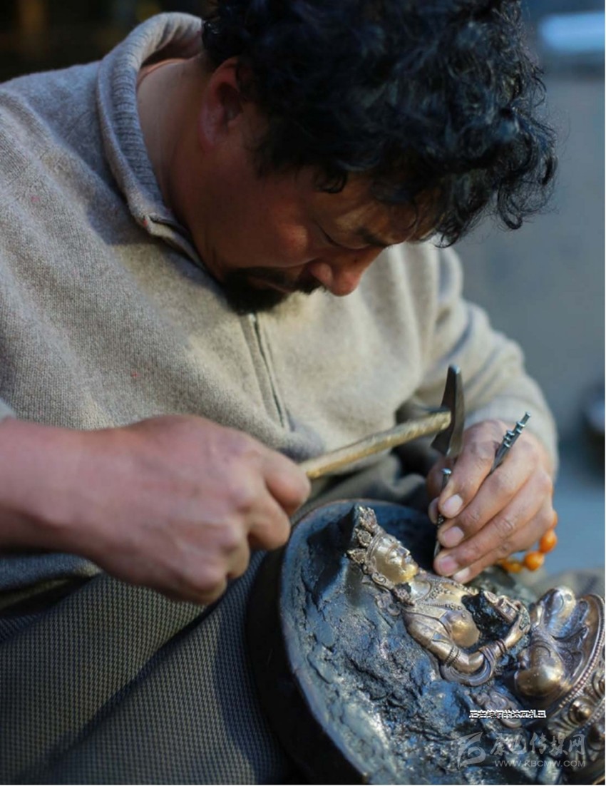 達(dá)瓦扎巴年輕、穩(wěn)重、活力,儼然一副小主人的模樣,用流利的漢語(yǔ)給我們介紹銅鑄技術(shù),也充當(dāng)我們和父親之間的翻譯。我們問(wèn)達(dá)瓦扎巴麥宿銅鑄佛像與其他地區(qū)的最大差別在哪里,他滿(mǎn)是自豪回答:我們的鎏金銅技術(shù),可以說(shuō)是獨(dú)家絕活,也是內(nèi)地近乎失傳的古法工藝。有故事為證:二十多年前,因?yàn)橹挥懈赣H一人會(huì)這門(mén)技術(shù),佛像產(chǎn)量很小。一位常年在印度做古董佛像投資生意的麥宿人回到老家,發(fā)現(xiàn)自己輾轉(zhuǎn)收來(lái)的“古董”竟然出自夏雷尼瑪之手。原來(lái)因?yàn)楣に嚬艠憔?,夏雷尼瑪制作的佛像被許多人冒充“古董”轉(zhuǎn)賣(mài),竟然流到了印度。