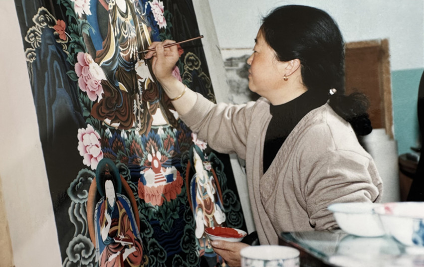 翔秋志瑪(又名王芳馨),這位在新中國成立后,成長起來的畫家,打破了女性不能畫唐卡的舊規(guī),將古老的藝術與藏民族現(xiàn)代的生活相結(jié)合,開創(chuàng)了我州藏畫的新局面。