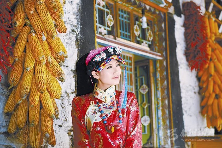 不知什么時(shí)候丹巴已被古碉?藏寨?美人谷這個(gè)名詞所取代。誠(chéng)然,丹巴有歷經(jīng)蒼桑歲月仍傲然屹立于荒草萋萋之中的古碉,也有散落在田間地頭的白色藏房,它們用歲月遺留下來(lái)的符號(hào)無(wú)言地訴說(shuō)著古老的過(guò)去。就在這美麗的土地上,綠水青山環(huán)繞中,充滿靈氣的古碉藏寨交相輝映,呈現(xiàn)出一幅天人合一的絕妙畫卷。也許是上天特別垂青于這塊土地吧!丹巴自古以來(lái)美女如云,一代代優(yōu)雅端莊,心靈手巧的姑娘,身著自已繡織的衣服,甩動(dòng)如云的繡帕,舉手投足間自有一番清雅高華的氣質(zhì),盡顯東女國(guó)后裔風(fēng)范。