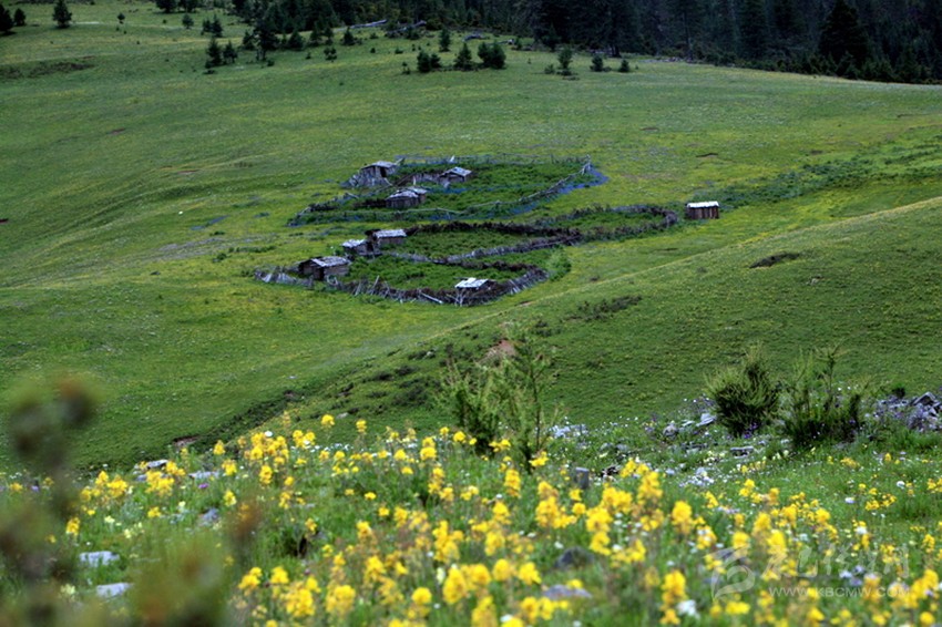 在雅江縣城西邊約60公里處,有一處山水秀麗的地方,由于遠(yuǎn)離公路,這地方一直“養(yǎng)在深閨人未識(shí)”。自然風(fēng)光格外秀麗姑且不說,只說那處地名為“郭崗頂”的、地形如“蓮花寶座”的山谷草壩上,緊靠一塊圓圓的叫做“太陽(yáng)”、另一塊彎彎的叫做“月亮湖”的兩個(gè)湖泊旁,有一處龐大的古建筑群遺址赫然入目,讓人驚嘆不已。不遠(yuǎn)處,一座已有600多年歷史的“郭沙寺”,也好像是在守望著不遠(yuǎn)處這群讓人遺忘的古舊破敗的建筑。