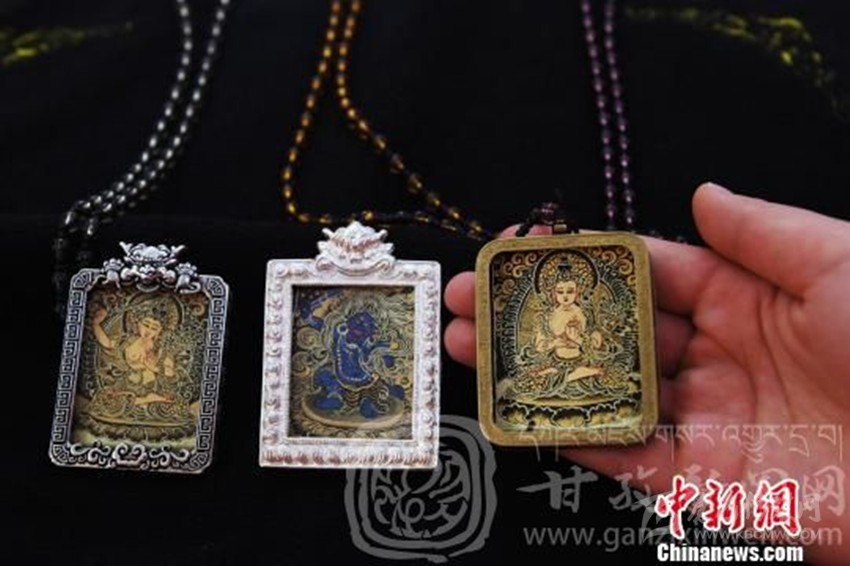 張馨藝說(shuō),微型唐卡完成后,經(jīng)精美銀盒裝飾后,不僅可以佩戴于身上,還可以掛在家中、汽車(chē)?yán)铮斜F桨驳囊馑?。相?duì)于巨幅唐卡,價(jià)格更容易被民眾接受,也有收藏的價(jià)值。