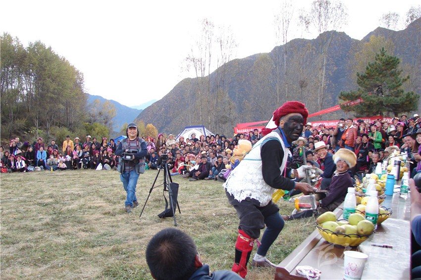 其實,對于這種畫臉的劇種,我以為,它最初應該來源于地頭文化,古時候的嘉絨農村,文化生活異常貧乏,在歷史的長河中,原住民主要依靠放牧及種地為生,在一起勞作時,男人和女人之間常常會開一些的玩笑,一般無所避諱。