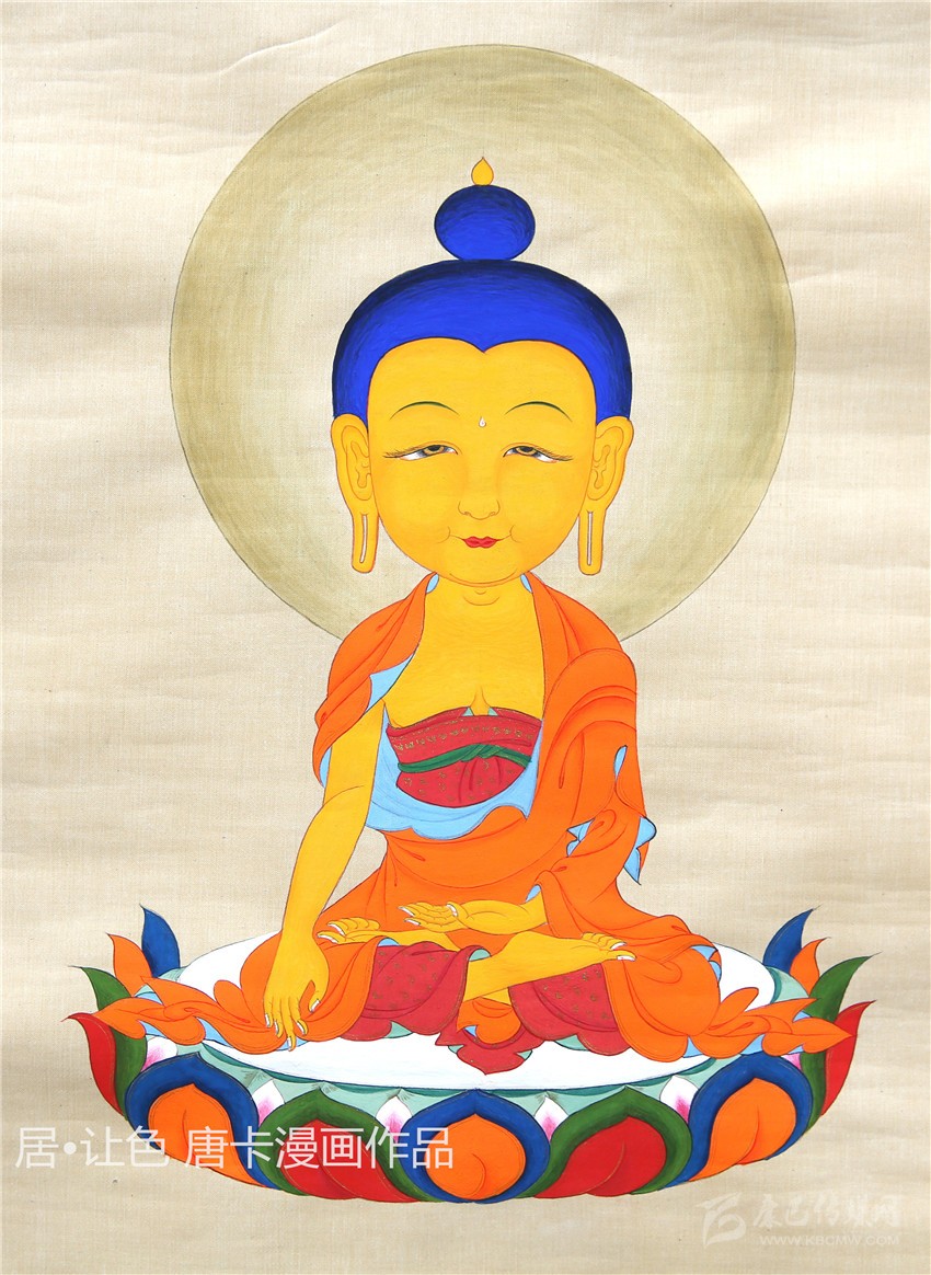 唐卡是藏族最具代表性的藝術(shù)門類之一,在其千年的傳承歷史中吸收融合了印度、尼泊爾等多地的藝術(shù)元素,發(fā)展成為極具雪域特色和審美價(jià)值的藝術(shù)形式。傳統(tǒng)唐卡缺乏立體感和形象感,畫面層次模糊,人物形象單薄,不利于民族文化傳承,“對(duì)于不懂畫的人來(lái)說(shuō),這種畫法他們看不懂?!被诖耍印ぷ屔珜?duì)唐卡繪畫技法作了改良,結(jié)合現(xiàn)代漫畫,以寫實(shí)的手法,實(shí)現(xiàn)活態(tài)傳承、永續(xù)流傳目的。