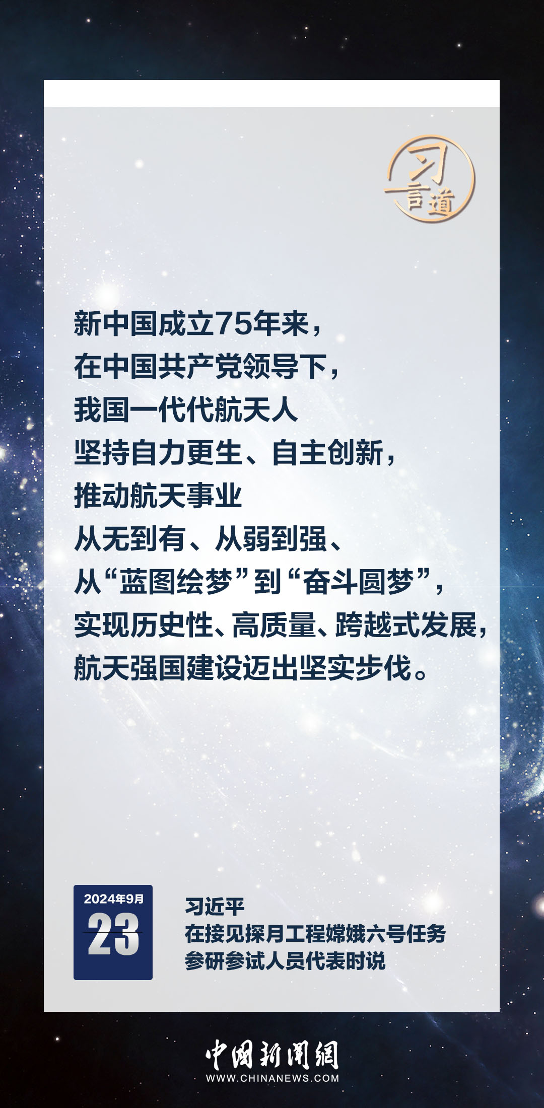 中共中央總書記、國(guó)家主席、中央軍委主席習(xí)近平23日在人民大會(huì)堂接見(jiàn)探月工程嫦娥六號(hào)任務(wù)參研參試人員代表時(shí)發(fā)表重要講話。習(xí)近平指出——