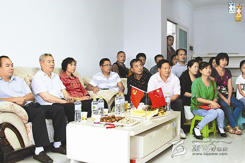 何曉莉的父親(左一)、母親(左二)和親戚好友們集聚一堂,通過(guò)電視看女兒駕機(jī)飛過(guò)天安門(mén)。