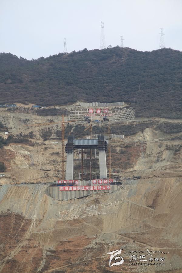 工地上煙塵滾滾,工程車輛來回穿梭。2月10日下午3時50分,記者在雅康高速公路瀘定大渡河特大橋施工現(xiàn)場看到,一臺臺挖掘機(jī)正在揮舞著巨臂,一輛輛載重汽車在運送著砂石。大渡河兩岸,巨大的塔吊在徐徐轉(zhuǎn)動,頂天立地般的橋臺正在長高。瀘定電站對面的山谷中,一條灰色的“巨龍”正在向前延伸。據(jù)記者此前得到的消息:春節(jié)期間,雅康高速公路施工全線不停工。記者在現(xiàn)場看到的情景,剛好印證了這一說法。據(jù)施工人員介紹,他們之所以選擇春節(jié)期間不停工,是希望通過自己的努力,盡快建成雅康高速公路,為藏區(qū)經(jīng)濟(jì)社會發(fā)展盡一份力。