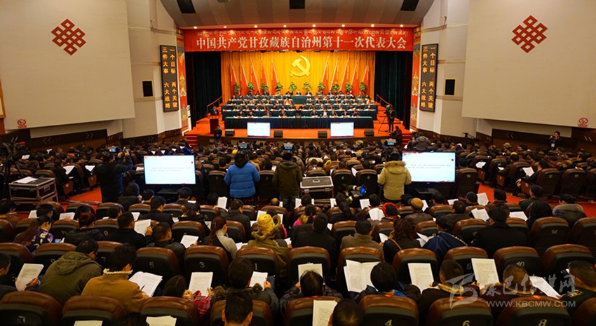 中國(guó)共產(chǎn)黨甘孜藏族自治州第十次代表大會(huì)在康定劇場(chǎng)隆重開(kāi)幕。本網(wǎng)記者 王明陽(yáng) 張兵 攝