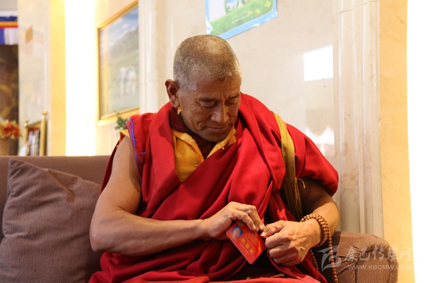 來(lái)自得榮縣的宗教界委員扎西鄧珠迫不急待的戴上出席證。