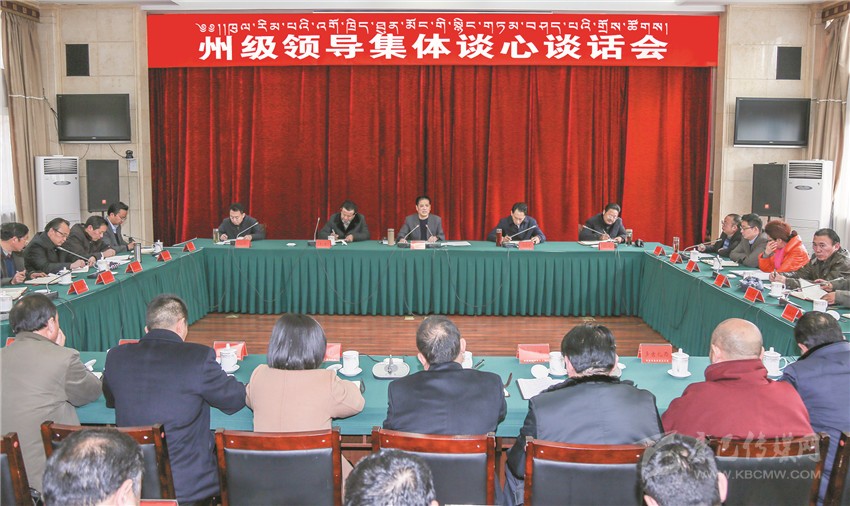 本網(wǎng)訊 (記者 楊杰 文/圖)1月12日上午,州委書記劉成鳴主持召開州級領導集體談心談話會,與州委、州人大常委會、州政府、州政協(xié)班子成員集體懇談交流、溝通思想。他強調(diào),州級領導要進一步統(tǒng)一思想,拼盡全力,擰成一股繩,匯聚一股氣,打好甘孜州的“翻身仗”,團結帶領全州各族干部群眾,齊心協(xié)力完成州第十一次黨代會確定的目標任務,確保到2020年與全國、全省同步全面建成小康社會。