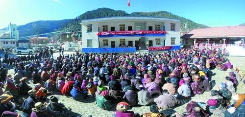 把講臺(tái)搬到院壩,擺上幾張藏桌,聽眾們席地圍坐在一起,頭頂上陽光融融,會(huì)場(chǎng)上溫情融融,黨的十九大精神宣講就這樣帶著“泥土”氣息來到群眾身邊。