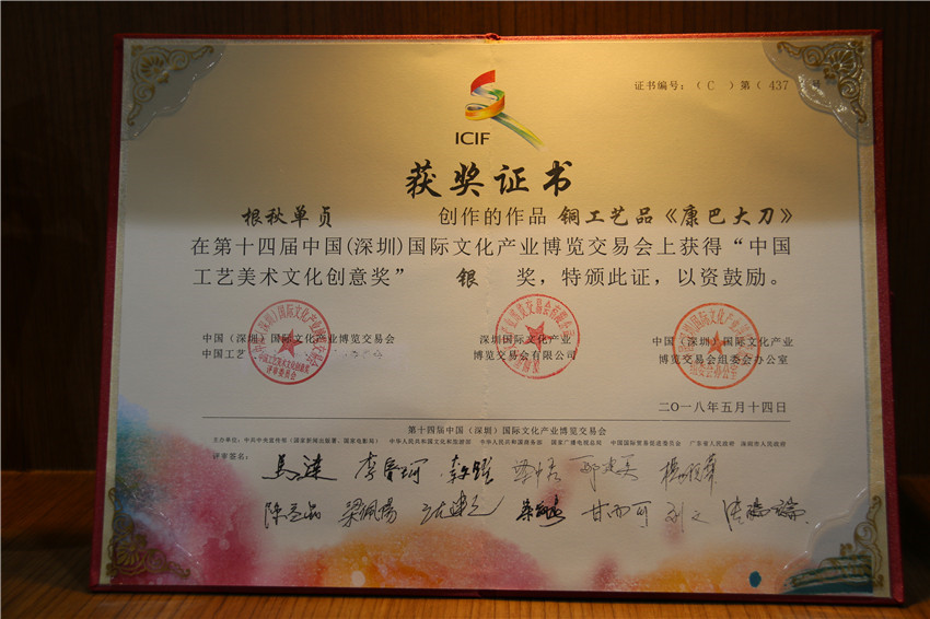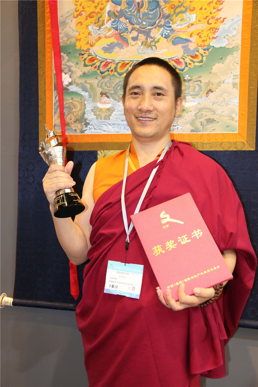 據了解,在本次深圳文博會上,我州參加十四屆深圳文博會參賽展品中有10件工藝品獲獎。其中,白玉縣董察文化公司參展作品首當其沖獲得工藝美術文化創(chuàng)意金獎。爐霍縣珍馬文化藝術公司、爐霍縣華彩文化傳播有限公司、白玉縣河坡藏民族手工藝公司、新龍藥泥面具分別獲得工藝美術文化創(chuàng)意銀獎;德格縣多普溝噶瑪噶孜文化旅游公司、甘孜州郎卡杰唐卡有限公司、丹巴木版畫、康體書法、德格絳紅天堂文化旅游公司分別獲得工藝美術文化創(chuàng)意銅獎。同時,州文體廣新局和康巴文化研究院獲優(yōu)秀組織獎;甘孜州全境文化產業(yè)有限發(fā)展公司和康巴聚慧文化傳播有限公司獲得優(yōu)秀展示獎。其它參展商均獲得本屆文博會優(yōu)秀入圍獎。國家一級手工藝美術大師、爐霍縣華彩文化傳播有限公司馮建華:“這一次是我公司第一次在文博會上參展,就榮獲銀獎,這要感謝黨委政府和文化部門提供的平臺。相信在此基礎上狠下功夫,越做越好,將陶瓷藝術與唐卡藝術很好的發(fā)揚光大?!?br/> “深圳文博會組委會對參展優(yōu)秀單位、優(yōu)秀個人及產品進行表彰,我州在設置的全部獎項中均有收獲,獲獎數量在全國地市級參展單位中名列前茅,成為全省獲得獎項最多的市州,因此在本屆文博會上反響強烈,完全達到了既定目標。”康巴文化研究院負責人牛麥青云說,能榮獲這樣的成績,都是在本屆文博會組委會的大力支持和幫助下,在省委、省政府和州委、州政府、州委宣傳部、州文體廣新局的關心和全力支持和指導下,并在各參展商家的積極配合下所取得的。下步作為文化系統(tǒng),將以供給側改革引領文化消費,弘揚我州傳統(tǒng)民族文化,推動全州非遺文化產品更上一層樓作出努力。