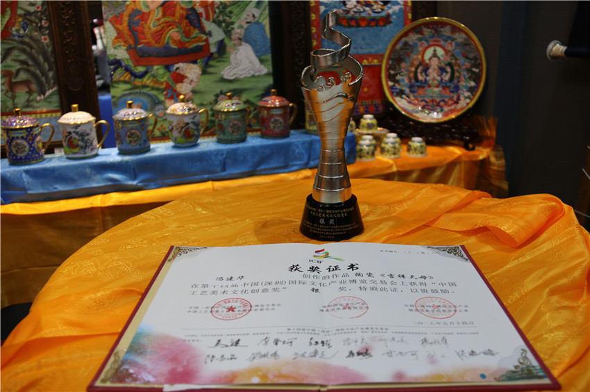 銅陶瓷《吉祥天母》榮獲銀獎。