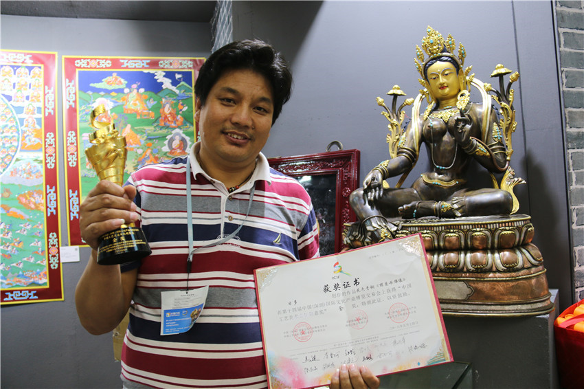本網訊(記者 宋志勇 文/圖)5月14日,歷時5天的2018年第十四屆中國(深圳)國際文化產業(yè)博覽交易會(以下簡稱深圳文博會)圓滿落幕。我州憑借花色青銅《綠度母佛像》作品摘得“中國工藝美術文化創(chuàng)意獎”金獎,成為本屆文博會大眾關注的焦點。