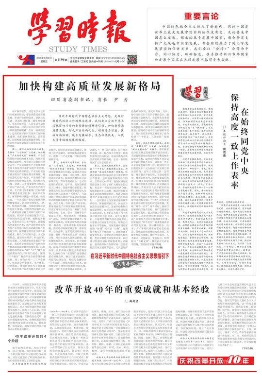 編者按:8月8日,《學習時報》頭版頭條“在習近平新時代中國特色社會主義思想指引下”欄目刊載四川省委副書記、省長尹力的署名文章《加快構建高質量發(fā)展新格局》,本網(wǎng)今日予以轉載: