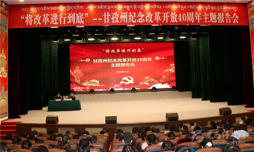 本網(wǎng)訊 昨(21)日上午,由州委宣傳部主辦的我州慶祝改革開放40周年“將改革進(jìn)行到底”主題報(bào)告會(huì)在康定劇場(chǎng)舉行。來自州委各部委、州政府各部門、省州屬行政企事業(yè)單位以及康定市機(jī)關(guān)干部職工代表共計(jì)500余人聆聽了報(bào)告。