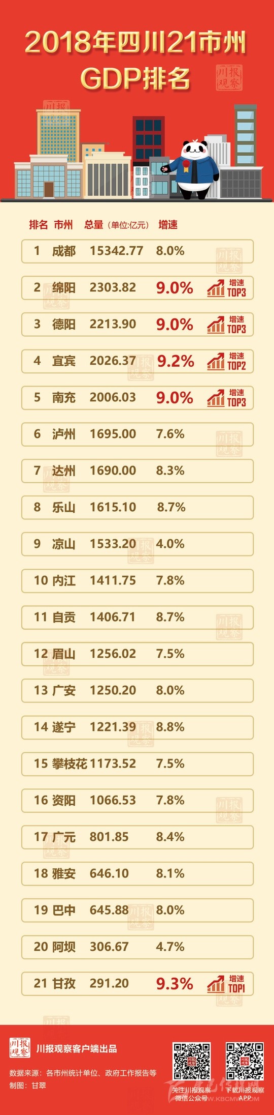 四川21市州2018年GDP排名出爐!你的家鄉(xiāng)排第幾?