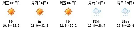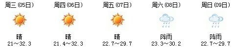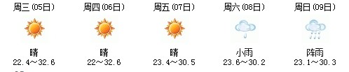 5日開始一直到9日都是多云到晴的天氣,日最高氣溫27℃左右。每天都有陣雨(小雨),考生出行應(yīng)防山地災(zāi)害。