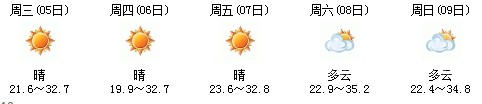 5日白天開始一直到9日,以多云天氣為主,其中7日晚有陣雨,日最高氣溫在30度上下,天氣比較舒適,不會(huì)出現(xiàn)高溫天氣,高考和端午節(jié)期間天氣還是比較給力: