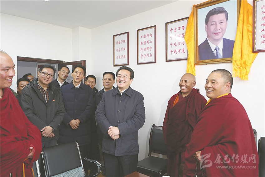 一路翻山越嶺,鄧小剛首先深入駐地營房和基層服務(wù)中心,看望一線武警官兵、公安干警、消防隊(duì)員和基層黨員干部,帶去省委的關(guān)心慰問。他指出,奮戰(zhàn)在雪域高原一線的同志戰(zhàn)嚴(yán)寒、斗風(fēng)雪、抗缺氧,迎難而上、頑強(qiáng)拼搏,為藏區(qū)繁榮發(fā)展長治久安作出了重要貢獻(xiàn),要堅(jiān)持嚴(yán)管和厚愛相結(jié)合,多了解基層一線同志的情況,關(guān)心他們的工作生活,聽取工作建議,幫助解決實(shí)際困難問題,注重在一線培養(yǎng)鍛煉干部,引導(dǎo)廣大黨員干部立足本職崗位爭做奉獻(xiàn)。在藏傳佛教寺廟和僧舍,鄧小剛同僧尼、信眾深入交心談心,了解他們修行和生活情況,勉勵(lì)他們發(fā)揚(yáng)愛國愛教、守法持戒優(yōu)良傳統(tǒng),多做利益眾生、造福社會(huì)的善事好事,發(fā)揮宗教促進(jìn)社會(huì)和諧的積極作用。在聽取州縣工作匯報(bào)后,他強(qiáng)調(diào),今年是新中國成立70周年,維護(hù)好藏區(qū)和諧穩(wěn)定責(zé)任重大,要樹牢“四個(gè)意識(shí)”,堅(jiān)定“四個(gè)自信”,做到“兩個(gè)維護(hù)”,全面貫徹黨的宗教工作基本方針,堅(jiān)持宗教中國化方向和獨(dú)立、自主、自辦原則,深入推進(jìn)藏傳佛教寺廟依法規(guī)范管理,營造安全、規(guī)范、潔凈、有序的修行環(huán)境,積極引導(dǎo)宗教與社會(huì)主義社會(huì)相適應(yīng),深入扎實(shí)做好各項(xiàng)工作,促進(jìn)藏區(qū)繁榮發(fā)展長治久安。