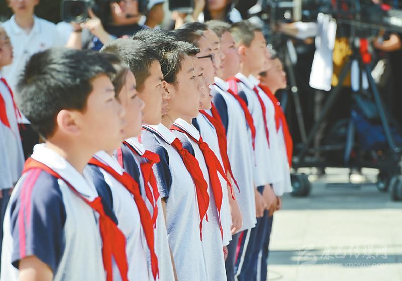 7月28日,紅軍飛奪瀘定橋紀(jì)念館前,少先隊員向英雄致敬。