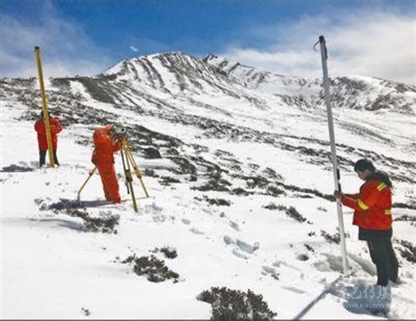 2月18日,在四川康定折多山,中鐵二院測繪院工作人員在進行川藏鐵路勘察。 張文 向春來 攝影報道